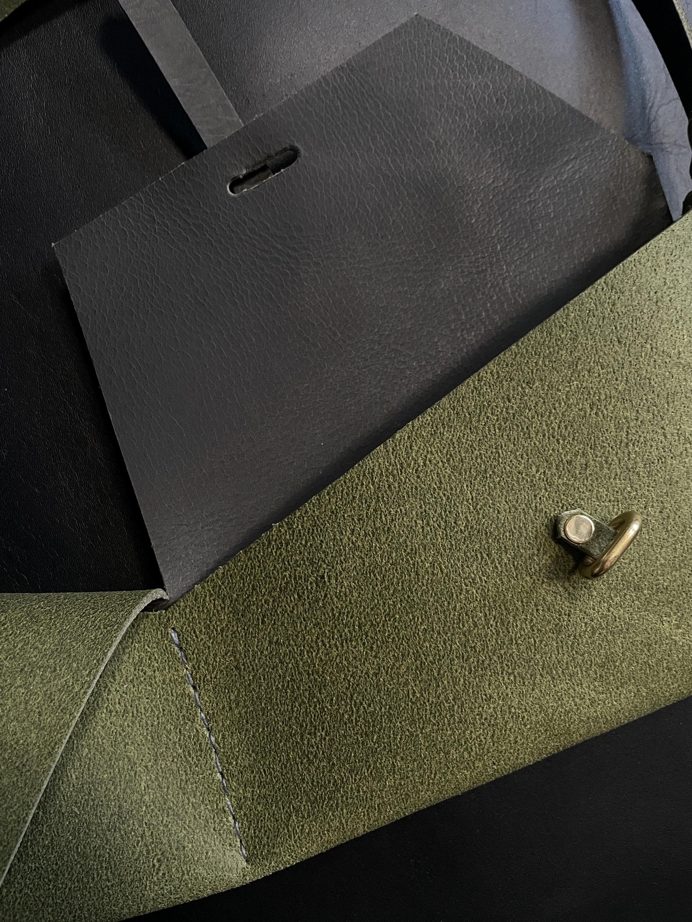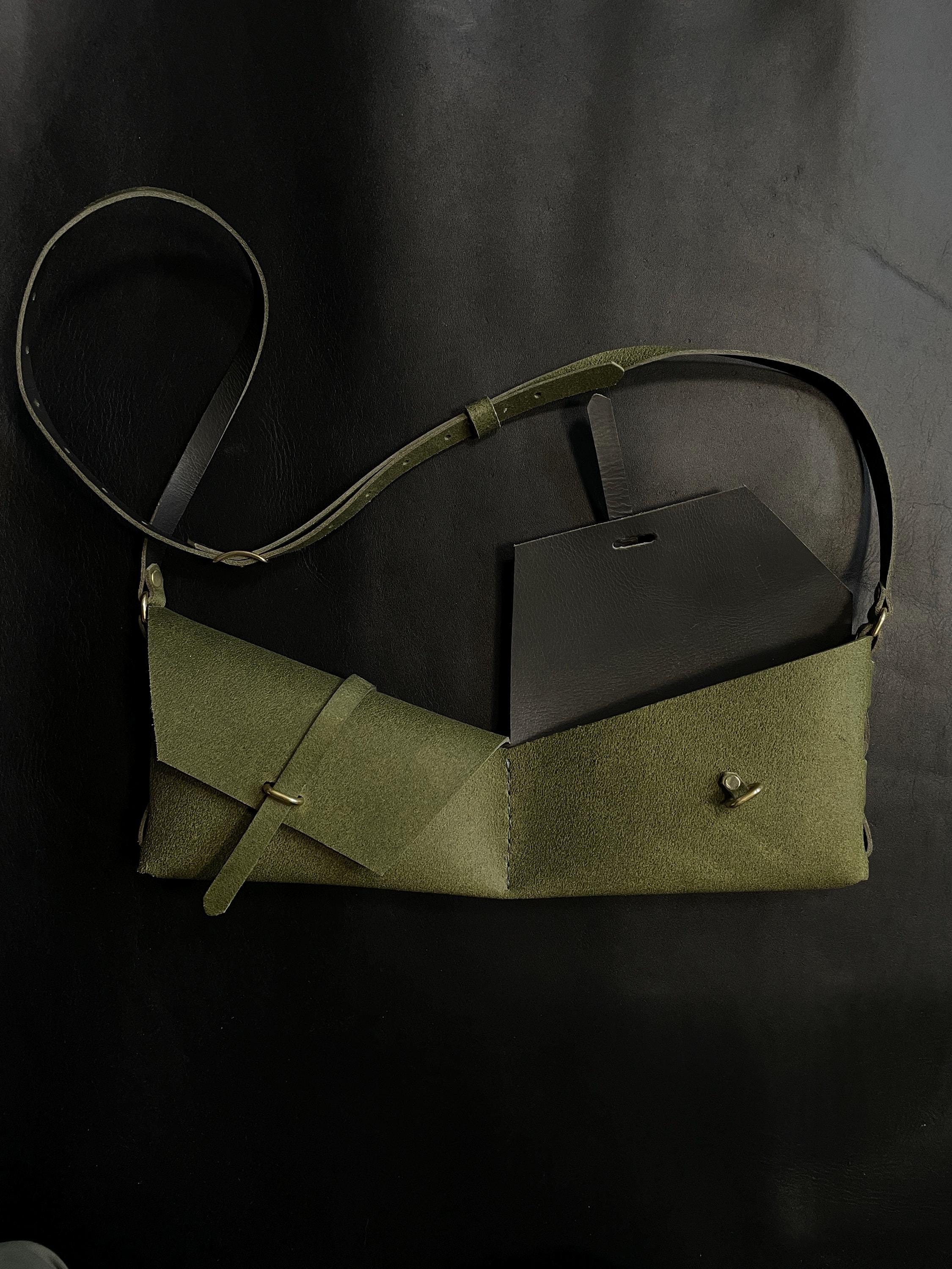 Brand new for fall. Our classic holster bag in a rough out green leather monochrome.